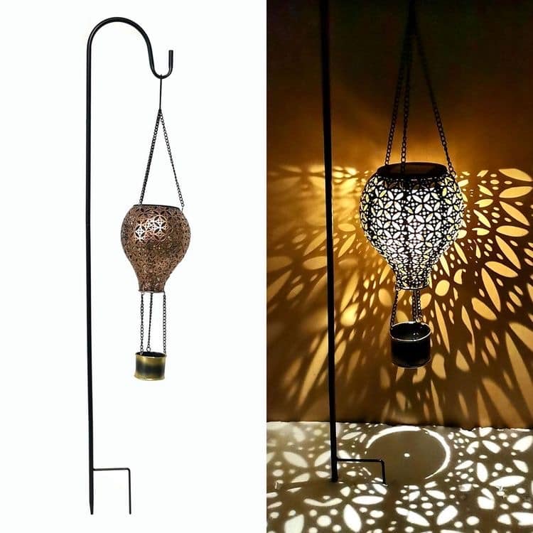 Haz volar tu imaginación con la encantadora estaca globo aerostático solar, una luminaria que combina arte, color y funcionalidad para decorar cualquier espacio exterior. Su forma de globo aerostático colgante aporta un toque lúdico y diferente al jardín, camino o terraza.